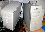Un design "morbido" per il Performa 6400 (a sinistra) e uno molto "spigoloso" per il PowerMac 8600 (a destra). Il primo usciva nell'agosto 1996 con PowerPC 603ev, il secondo sei mesi dopo con chip PowerPC 604e e lettore Zip integrato. |