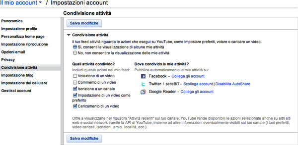 Gli aggiornamenti della pagina personale su Facebook possono comparire anche nella pagina dei video di YouTube.
