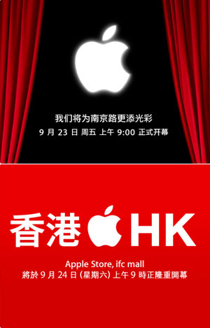 Apple punta alla Cina con una coppia di enormi negozi. Il primo che sarà inaugurato è il terzo di Shangai a Nanjing road east (零售店址) nel palazzo Henderson Metropolitan, alle ore 9 locali di venerdì 23 settembre, con spazi disposti su ben 5 piani. Apple Store numero 107 fuori dagli USA.