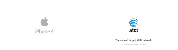 Questa volta appare alla fine, dopo il marchio iPhone 4 sovrastato dalla mela morsicata di Apple, il logo dell’operatore statunitense AT&T (che ha la rete Wi-Fi più diffusa) ma la parola “esclusiva” non si legge più come ai tempi dei precedenti modelli di iPhone.
