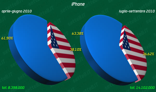 Facendo però il paragone con le vendite mondiali, che sono state di 14.102.000 iPhone, la quota degli Stati Uniti cala dal 38,1 al 36,62%. Resta il primo mercato mondiale, ma con un peso minore.
