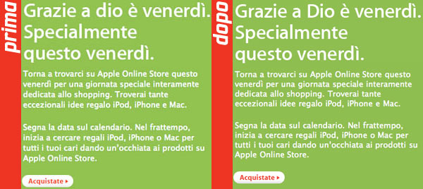 Nel frattempo i grafici di Apple Italia da ieri si sono ravveduti. La loro punizione sarà forse una frequentazione maggiore del catechismo?