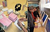 Il primo gruppo viene festeggiato dagli addetti del negozio. |