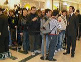 Fa piuttosto freddo ma l'ardore per il Mac li riscalda e, seppur disordinatamente accalcati, attendono pazientemente l'ultima ora e mezza che manca ancora alle 9 del mattino. |