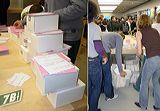 Sono arrivate anche le palle di gommapiuma per il banco dei bambini. Qui però ogni posto è buono per compilare la cartolina del concorso... |
