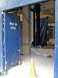 ...alcuni tecnici discutono sulla porta d'entrata del cantiere... |