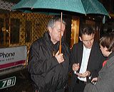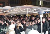 ...ed ecco puntuale la folla che attende sotto la pioggia l'apertura del negozio della T-Mobile... |