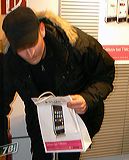 ...eccolo visto da vicino l'oggetto del desiderio. T-Mobile fa firmare il contratto, lo deve timbrare, controfirmare, inserire nel database, non certo un'operazione di pochi secondi... |