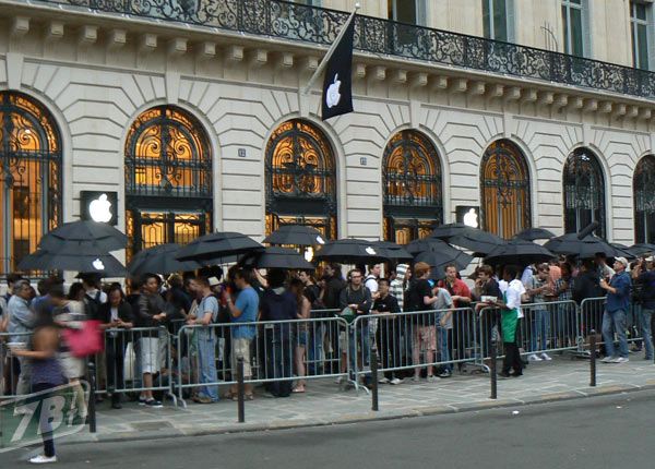 ...le prime gocce cadono ed ecco altri loghi di Apple che si affacciano su Parigi...