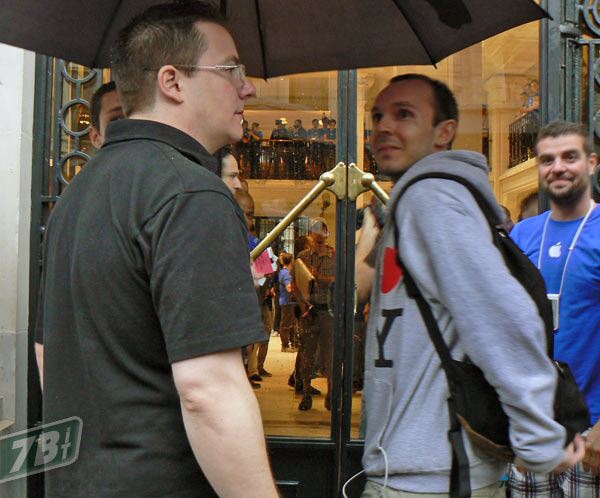 ...il primo della fila Fabrice si mette in pole position, scortato dagli ombrellai di Apple...