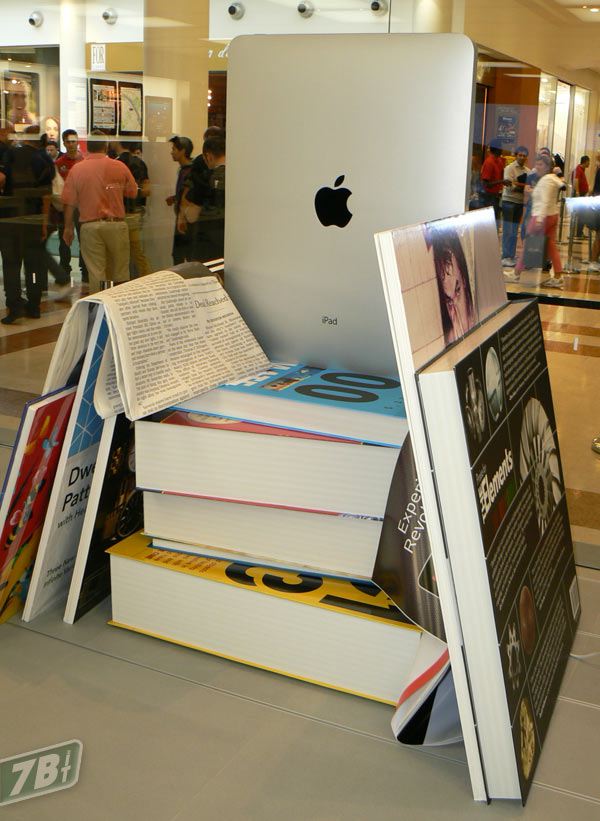 ...la vetrina รจ una gigantografia di iPad e la materializzazione dei suoi contenuti digitali...