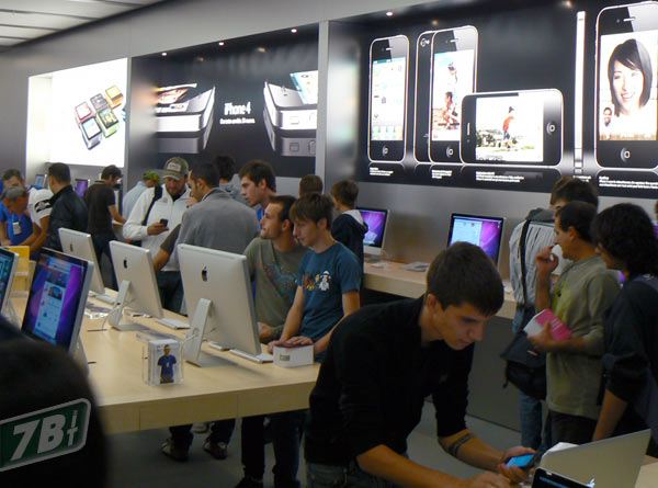 ......sul lato sinistro i banner retro-illuminati si occupano di iPhone ed ancora iPod...