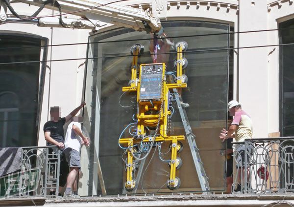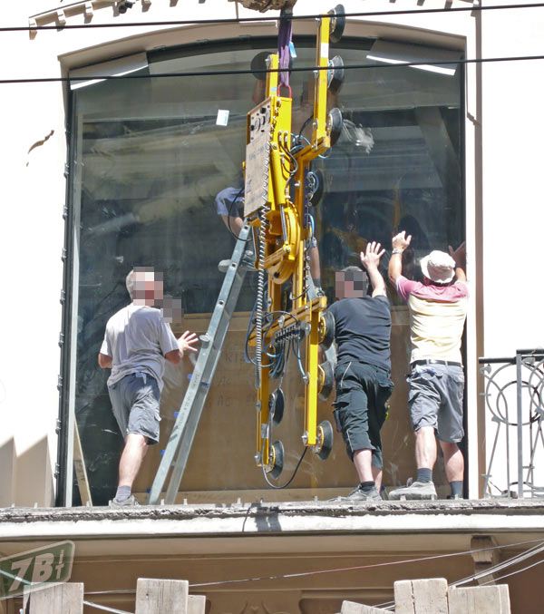 ...una volta posato il pesante vetro, interviene l'esperienza per la corretta installazione...