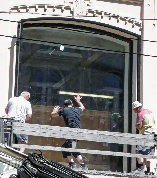 Lavori in corso a Bologna, la vetrata dell'Apple Store