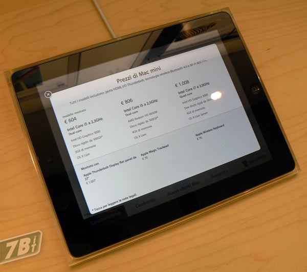 ...l'iPad che funghe da cartellino prezzi interattivo ci conferma che quello in mostra รจ il Thunderbolt Display da 1.007 euro...
