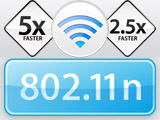 Apple informa che fino a 50 utenti potranno collegarsi alla rete wireless in grado di offrire prestazioni fino a 5 volte superiori e il doppio della portata dei network basati sul Wi-Fi 802.11g.