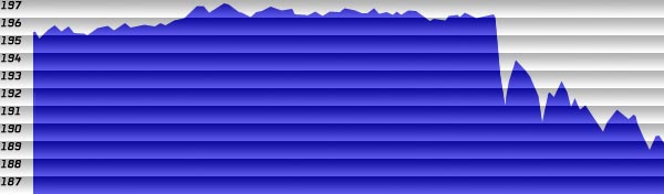 A meno di due ore dalla chiusura della borsa il taglio del tasso d'interesse dei fondi statunitensi fa precipitare tutti gli indici e il valore delle azioni Apple non ne resta fuori, mentre il prezzo aveva appena segnato il nuovo record di 196,83 dollari.