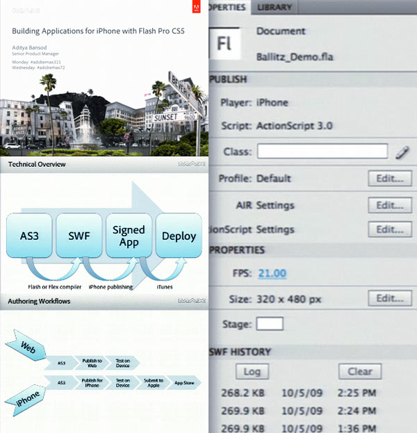 Una delle sessioni della conferenza MAX 2009 illustra la novità più interessante, ovvero la trasformazione di applicazioni Flash in software da distribuire sull'App Store.