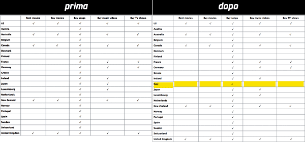 Come si vede dalle tabelle sottostanti l'articolo tecnico HT3069 riportava, da non meno di due mesi e mezzo, l'errore dell'assenza dell'Italia tra i 22 paesi dove è attivo un iTunes Store. Solo al termine di settimana scorsa è stato corretto aggiungendo anche l'indicazione del Bel Paese. Noi lo segnalavamo a fine ottobre 2008.