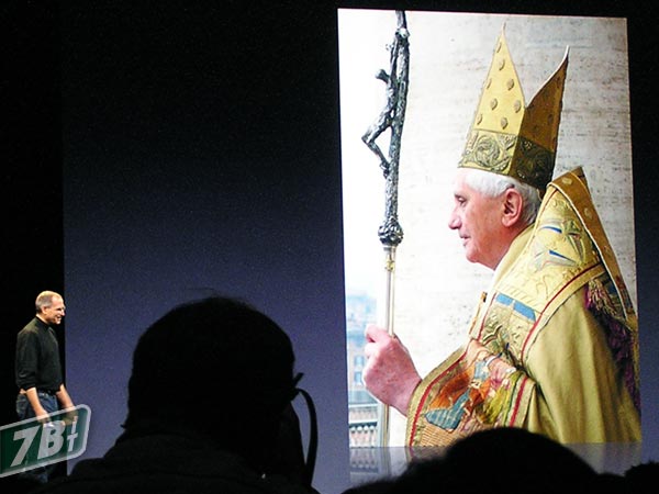 Ricordiamo che durante il Macworld Expo del gennaio scorso Steve Jobs aveva fatto apparire sullo schermo del Moscone Center di San Francisco una foto del Papa, per significare a che livello le preghiere di Apple erano arrivate per ottenere da IBM dei G5 più potenti… mai arrivati.