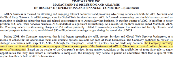 Non sono trascorsi 50 giorni dal cambio di CEO per AOL che Time Warner, in occasione del bilancio del primo trimestre del 2009 (-14% sull'utile netto), ha deciso le sorti di una delle sue divisioni.