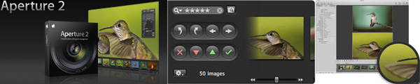 Con Aperture sarà più veloce l'importazione, la navigazione e la ricerca fra grandi volumi di immagini. Le anteprime integrate permettono ai fotografi di assegnare titoli, parole chiave e rating alle immagini quando vengono importate e, grazie alla possibilità di esportare immagini mentre si è impegnati su altro, i fotografi possono ora continuare a lavorare mentre le immagini vengono esportate in formato JPEG, TIFF, PNG e PSD (è stato aggiunto il supporto a FFF e 3FR per i file in importazione). Quick Preview permette agli utenti di navigare fra le immagini RAW in rapida successione senza dover aspettare che i file vengano caricati; il database della libreria Aperture è stato riprogettato per fornire la possibilità di cambiare velocemente da un progetto ad un altro e per fornire risultati della ricerca quasi istantanei, anche quando si lavora su librerie estremamente grandi con oltre 500.000 immagini.