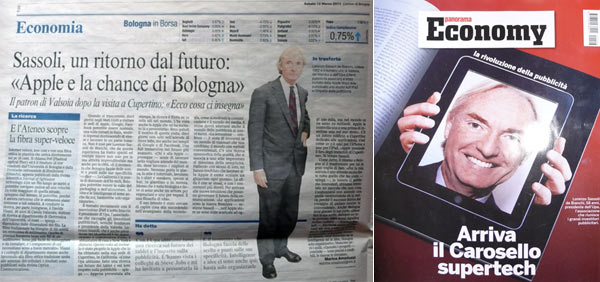 Le opportunità per Bologna le identifica anche Lorenzo Sassoli de Bianchi, presidente dell’UPA – Utenti Pubblicità Associati, fresco di un viaggio a Cupertino per mostrare ai responsabili di Apple uno studio del novembre scorso sull’impatto nella pubblicità sui tablet. “L’iPad apre una terza via tra la carta ed il web, la fruizione via iPad aumenta l’impatto, diminuisce l’invasività, è un’esperienza piacevole, un engagement complice ed estremamente coinvolgente” ha dichiarato Sassoli de Bianchi.