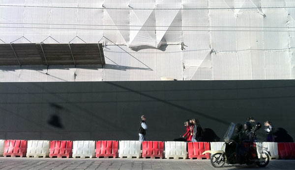 Aggiornamento del 30/03/2011: grazie a StokDesign apprendiamo che è stata data una mano di vernice nera alle barricate esterne e quindi è sparito il primo di tanti graffiti.