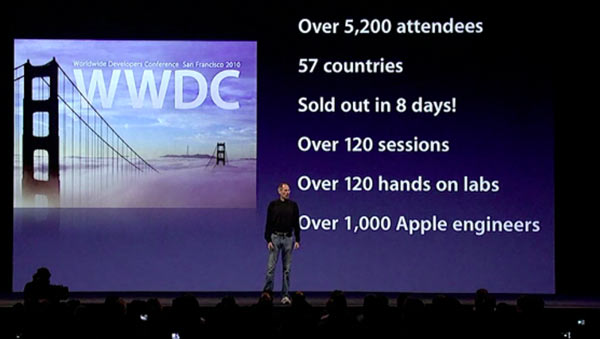 Consigliamo la visione del momento del malfunzionamento della rete Wi-Fi dell’iPhone 4, con il minaccioso Steve Jobs che ordina a tutti di posare i laptop a terra e chiudere il wireless (circa 1 ora dall’inizio). Davvero una caduta di stile nei confronti di tutti quelli che cercavano di comunicare al mondo esterno ciò che succedeva nel Moscone Center West.