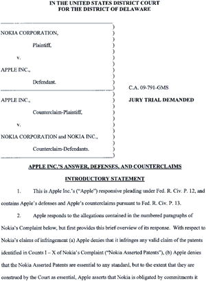 Nokia faceva causa ad Apple a fine ottobre per 10 brevetti, che l’azienda di Cupertino avrebbe usato senza licenza da Nokia per l’iPhone.