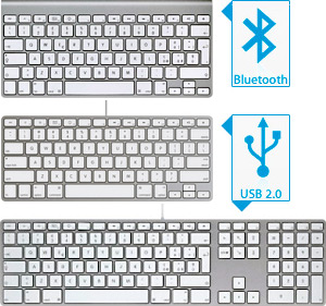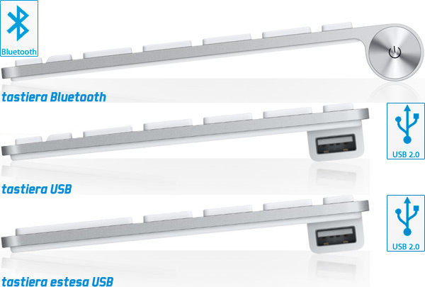 Oltre alla Keyboard con tastierino numerico ed alla Wireless Keyboard funzionante senza fili, entrambe introdotte nell'agosto del 2007, arriva una compatta Keyboard dalle dimensioni simili a quella funzionante con tecnologia Bluetooth (qui la vediamo al centro con il layout non ancora italiano).