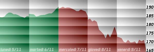 Aggiornamento del 12/11/2007: le AAPL hanno continuato il loro pesante declino anche nelle quotazioni di lunedì. Il titolo ha chiuso a 153,76 dollari con un ribasso ulteriore di oltre il 7%.
