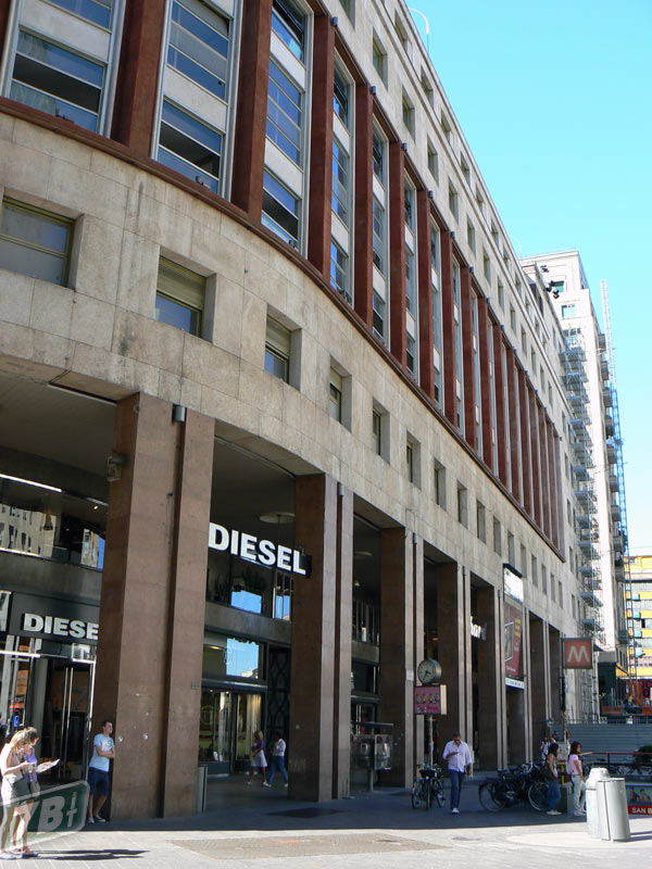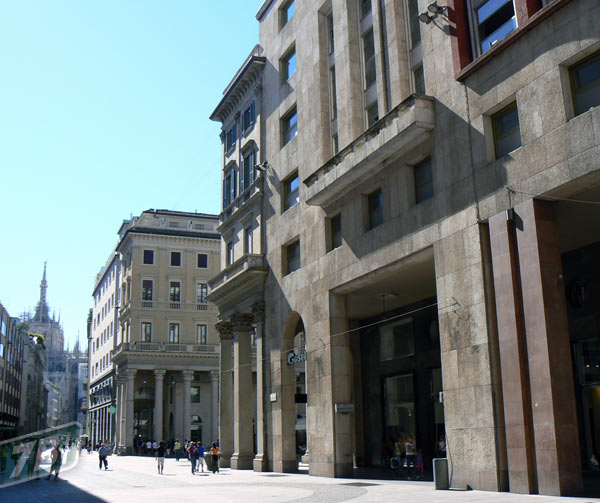 Al piano terra l’edificio ospita vari negozi, principalmente di abbigliamento, questo è pur sempre il quadrilatero della moda con prezzi al metro quadro da brividi.