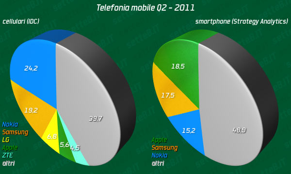 in totale le vendite di telefoni cellulari sono cresciute nel Q2 dell’11,3% rispetto al medesimo periodo del 2010 a 365,4 milioni di dispositivi.