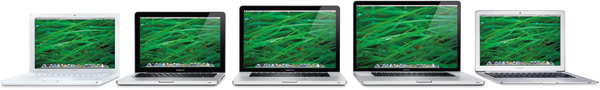 Novità sui prezzi di tutta la gamma dei computer portatili. Di MacBook ne resta uno solo ed è il modello in plastica bianca. La batteria interna è ormai estesa a tutti i modelli unibody. FireWire 800 nel modello da 13".