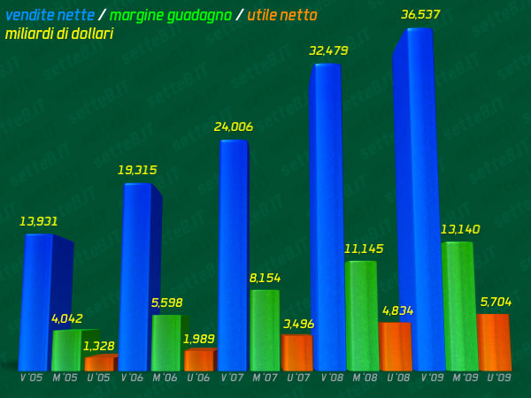 Apple (società che ci tiene a specificare che è stata fondata in California nel 1977) ha rivelato i conti dell’intero anno fiscale 2009, a pochi giorni dalla chiusura del quarto trimestre 2009, terminato a fine settembre.