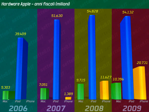 Il valore di avviamento incamerato da Apple nel 2009 è calato di 1 milione a 206 milioni di dollari. Erano “soli” 38 milioni di dollari nel 2007.
