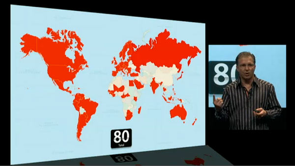 Ci risiamo. Martedì sera Apple presentava quello che sarà l’OS 3 dell’iPhone/iPod touch ed all’inizio del keynote Greg Joswiak mostrava la mappa mondiale con gli 80 paesi dove lo smartphone era disponibile.