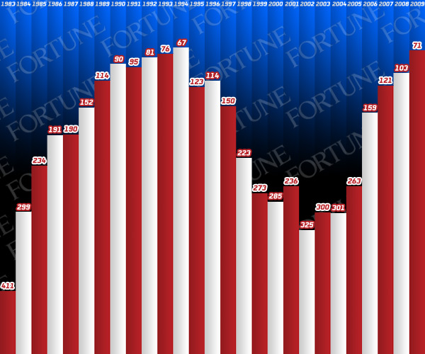 Tra le aziende USA che fatturano di più Apple passa dalla posizione 103 del 2008 alla 71 del 2009.