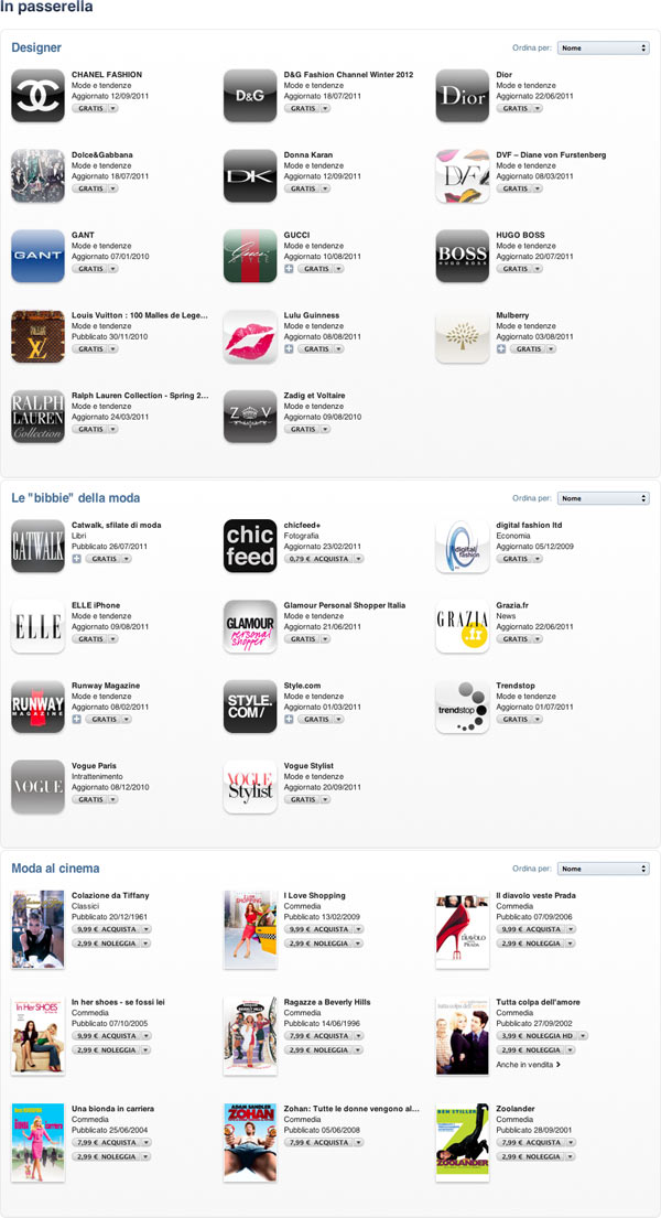 Infatti su iTunes Store/App Store sono disponibili varie risorse raccolte sotto alla voce “in passerella”.