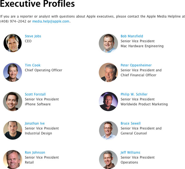 L’ultima aggiunta nel gotha di Cupertino è stata quella di Jeff Williams (luglio 2010), controllore della qualità dei prodotti e dei fornitori, ex costola degli impegni del COO, dalla quale Tim Cook si è separato volentieri per meglio fare il supplente a tempo pieno di Steve Jobs.