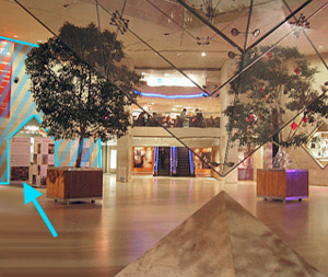 L'Apple Store dovrebbe sorgere (come vi mostriamo nella mappa e nella foto allegate, con l'area evidenziata) accanto alla scala mobile, al posto degli attuali "Lalique" (bigiotteria) e "Résonance" (prodotti naturali) che attualmente occupano l'area, per un totale di 715 metri quadrati.