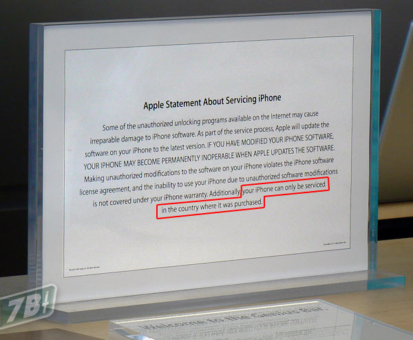 Infine, sarebbe lecito chiedersi: "se mi trovo dall'altra parte del mondo (in Giappone, in Cina, in Australia, in Canada, in USA, in Gran Bretagna, in Germania o nella vicina Svizzera) basta che mi rechi in un Apple Store per ricevere assistenza immediata sull'iPhone che ha smesso di funzionare". Finché non cambiano le regole, su tutti i banchi Genius Bar dei negozi di Apple (come questo fotografato a New York City) campeggia un cartello dove si spiega chiaramente che l'assistenza sarà data solo per gli smartphone attivati in quel paese e non altrove.