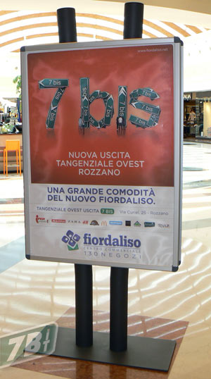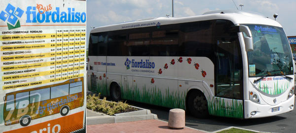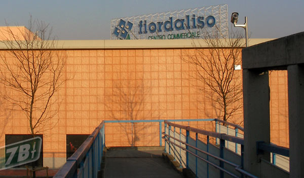 Il centro commerciale Fiordaliso, che al sabato apre le porte alle ore 8:30 (mezz’ora dopo da lunedì a venerdì), è collocato nel comune di Rozzano, alla periferia meridionale di Milano. E’ raggiungibile in auto (ci sono sterminati parcheggi al coperto ed in superficie) dalla comoda uscita 7bit… ops, 7bis, della tangenziale Ovest, è raggiungibile da Rozzano con il FiordaBus ed è raggiungibile da Milano con la linea 15 del tram che parte da piazza Fontana. Chi sceglie quest’ultimo mezzo (attenzione a comperare il biglietto giusto), una volta arrivato alla fermata “via Curiel/via Lambro”, dovrà percorrere la passerella che vedete qui sotto.