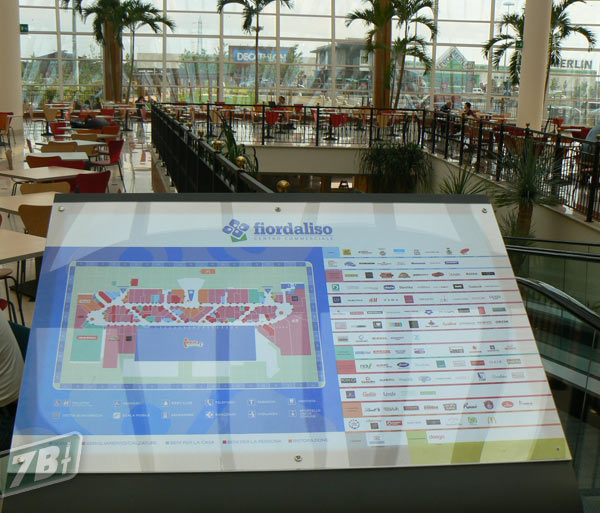 Chi sale dal parcheggio sotterraneo con la scala mobile arriva qui, nel centro del centro commerciale dove ci sono i punti di ristoro, le palme finte e la mappa per districarsi.