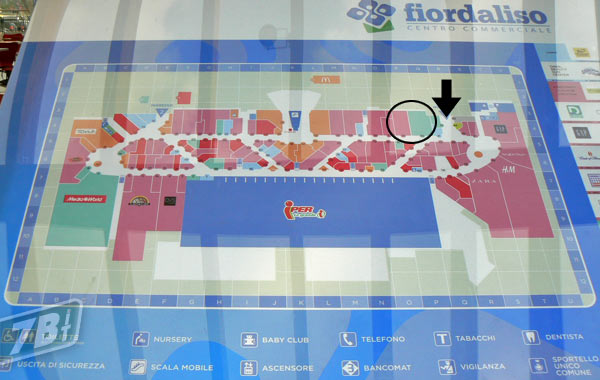 Guardando la facciata del centro commerciale Fiordaliso puntate all’ingresso 1, ad ovest/sinistra, per raggiungere più velocemente l’Apple Store.