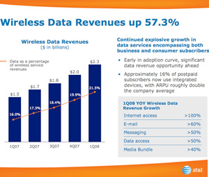 Rispetto ad un anno fa AT&T oggi ha visto raddoppiare l'accesso a Internet dai telefoni cellulari dei clienti, aumenta del 60% l'uso della posta elettronica su apparecchi mobile ed i messaggi del 50%.