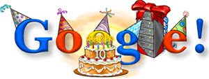 Aggiornamento del 27/09/2008: A lato vediamo il doodle della decima ricorrenza, con una pila si server nastrati a festa.