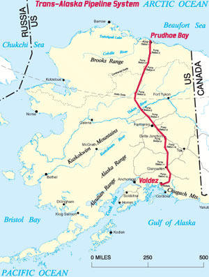 Il punto più a sud dell’oleodotto è Valdez, dove attraccano le petroliere che fanno il pieno di oro nero. Qualcuno ricorderà i tragici eventi per l’ecologia della zona quando, nel 1989, la speronata Exxon Valdez rilasciò in mare fino a 120.000 metri cubi di petrolio.