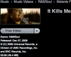 Il videoclip regalato questa settimana da iTunes Store USA è “It kills me” di Melanie Fiona.